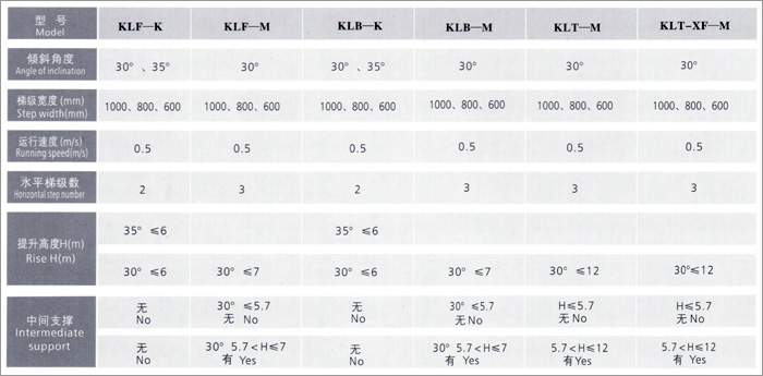 Escalator Specification Table